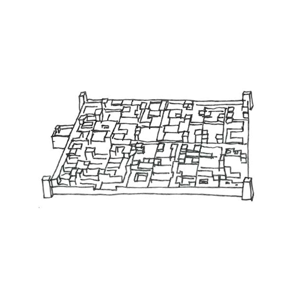 - Dar : « Le lieu qui regroupe tous les espaces construits (source l’aventure des mots de la ville). Habitation, demeure de la sécurité. Espace entouré de murs vides; cour ouverte sur laquelle donnent des espaces fermés habitables ; organisation autour d’un vide