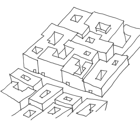 La maison à cour insérée dans un tissu continu permet de créer un espace extérieur protégé, approprié par les habitants et offrant un grand potentiel pour rafraichir la maison, qu’il protège contre les vents, en en particulier contre les tempêtes de sable ou de poussière. Ce type de texture permet de gérer de manière graduée l’accès solaire. Les chercheurs ont mis en évidence les avantages des textures urbaines à cour pour les climats chauds :