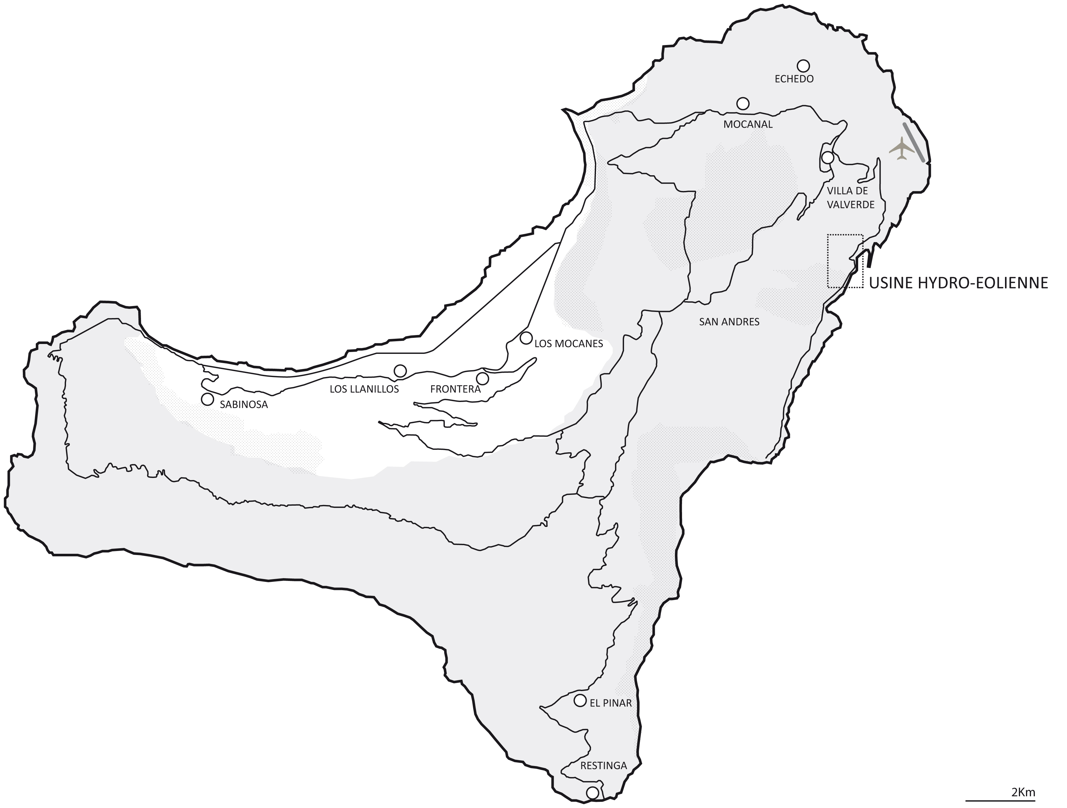 La isla no puede establecer una red eléctrica submarina debido a su posición alejada del resto del continente, y a sus aguas profundas. Una de las características de este minúsculo territorio volcánico, es que no posee agua potable. En ésta, no existen ríos, arroyos o fuentes… A primera vista, El Hierro lleva bien su nombre, una roca árida y solitaria perdida en el océano.