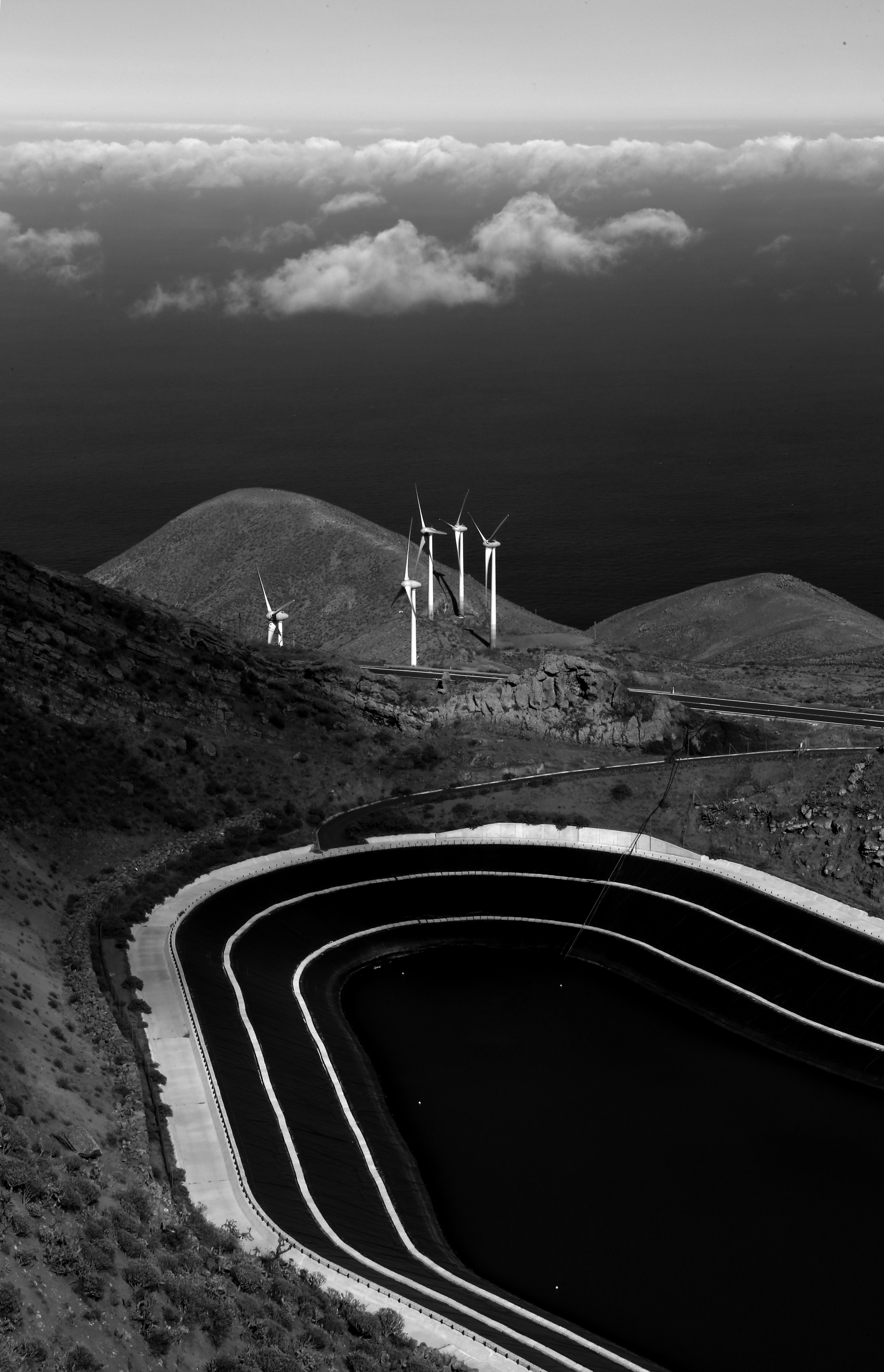 The appearance of the device may seem simple and obvious, but it took thirty years of persistence to breathe life into this visionary project. The existing landscape and its peculiarities were certainly taken into account when finding a solution to the problem and positioning the infrastructure. The upper reservoir is positioned in an old volcano chimney. Part of the pipelines carrying water had to be buried as a protected species of endemic cactus were on the way. Wind turbines or windmills and the Gorona Del Viento factory were placed on the most deserted and uninhabited side of the Island, aiming to make their impact on the landscape as minimal as possible. The hydro-wind power project has really changed the image of the Island. It is the backbone of a global sustainability project in its own way.